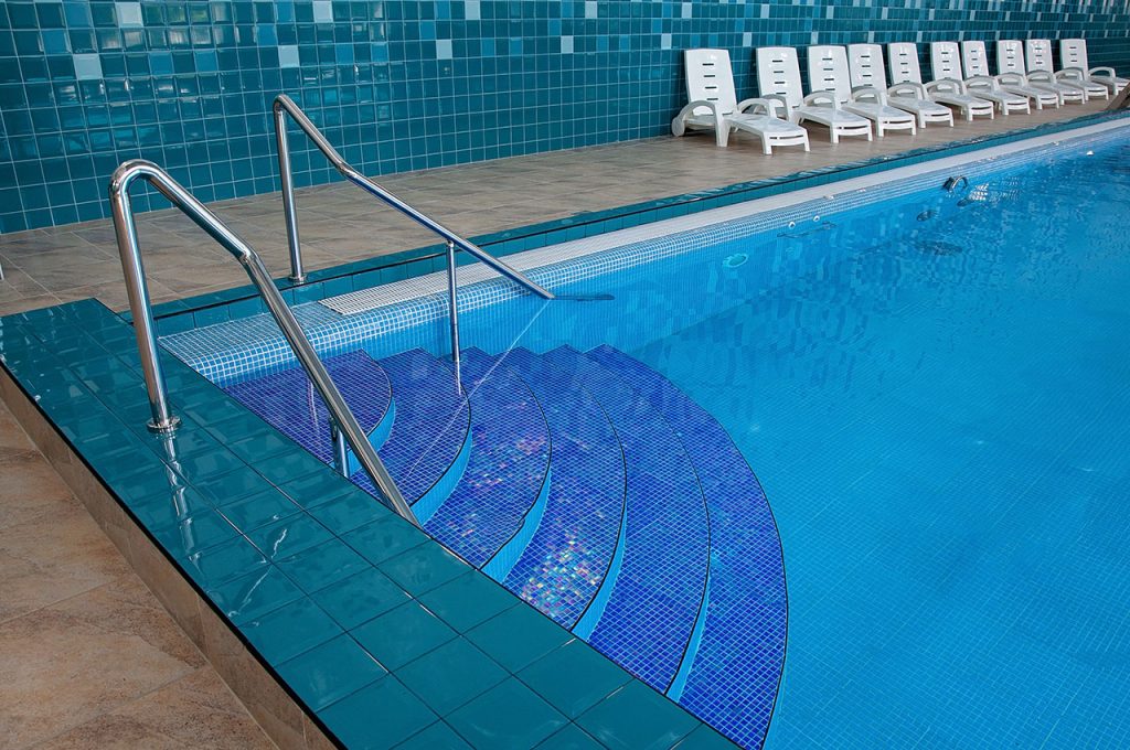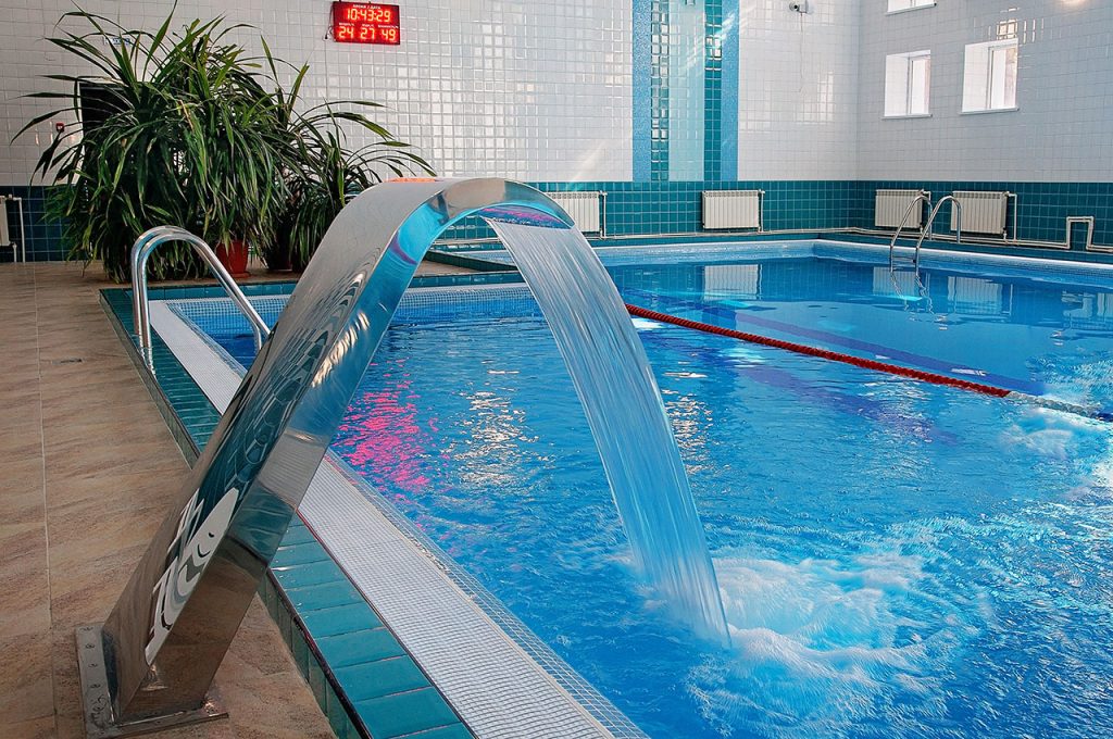 Бассейн нашего парк-отеля – это 230 м² кристальной воды с обустроенной зоной отдыха. Длина бассейна 25 м, ширина 10 м. Минимальная глубина 1,40 м, максимальная глубина 2 м. Бассейн оснащен 2-мя противотоками, гейзерами и водопадом. В раздевалках оборудованы сауны.